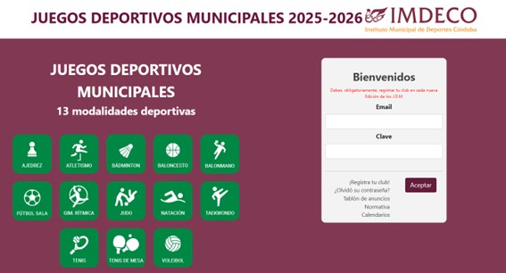 JUEGOS DEPORTIVOS MUNICIPALES 2025-2026 por Imdeco | Instituto municipal de deportes de Córdoba Abierto el plazo de Inscripción del 1 al 30 de octubre 2025. Pincha aquí para obtener más información.